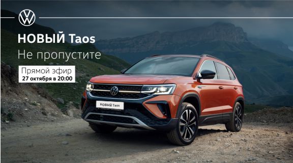 27 октября в 20:00 мы приглашаем вас познакомиться с Абсолютно новым Volkswagen Taos. Встречаемся в прямом эфире в Instagram официальных дилеров Volkswagen в Красноярске (@VW_MEDVED).