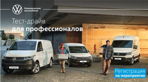 «Тест-драйв для профессионалов» — это прекрасная возможность испытать Volkswagen в действии. Мы подготовили две специальные трассы с искусственными препятствиями с последующем выездом на внедорожный участок. Все это позволит вам узнать и убедиться почему коммерческие автомобили Volkswagen претендуют на звание лучших в классе лёгкой коммерческой техники.