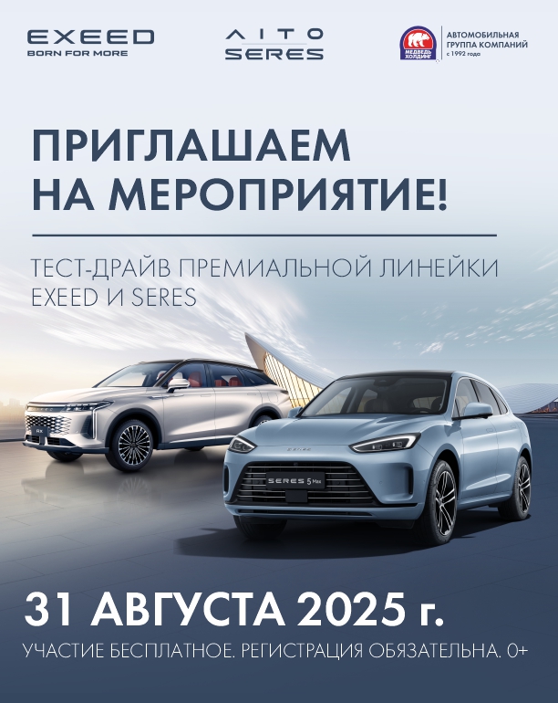 Уже 31 августа Вы сможете лично испытать премиальные кроссоверы EXEED или инновационные гибридные автомобили SERES!
